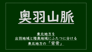 奥羽山脈は東北地方の中央部を南北に走る約500kmの長い山脈です。東北地方はこの山脈により太平洋側と日本海側に分けられます。太平洋側と日本海側では気候も異なります。2000m級の高さの火山も見られる。近年、東西を結ぶ秋田新幹線や高速自動車道...