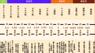 進化 地質時代(先カンブリア・古生代・中生代・新生代)とは?(年表もあるよ) 地球に近くが形成されてから今現在までの期間を地質時代と言います。地質時代は、、、地球が誕生した約46億年前から約5.4億年前までの先カンブリア時代、5.4億年前から2.5億年前までの古生代、2.5億年前から0.66億年前までの中生代0.66... 2022.04.13 進化