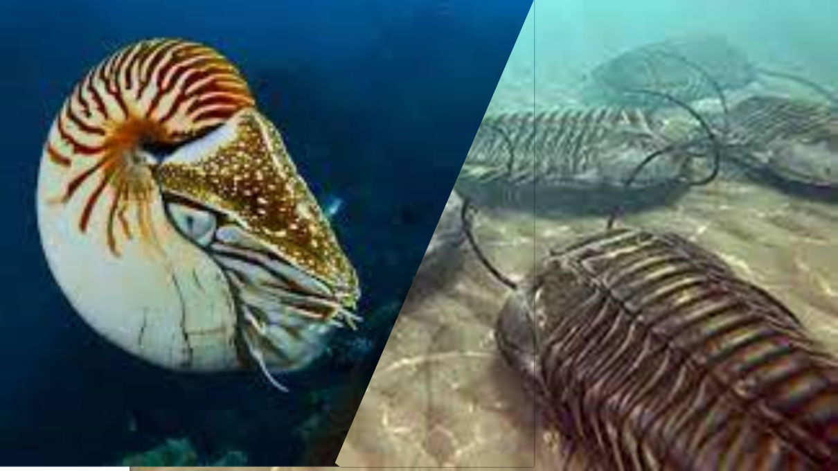 その捕食者から身を守るために炭酸カルシウムの殻を持つ無セキツイ動物が出現します。その代表が三葉虫やオウムガイなのです。