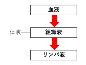血しょうの一部が、毛細血管からしみ出して、細胞間や組織間を満たしていきます。