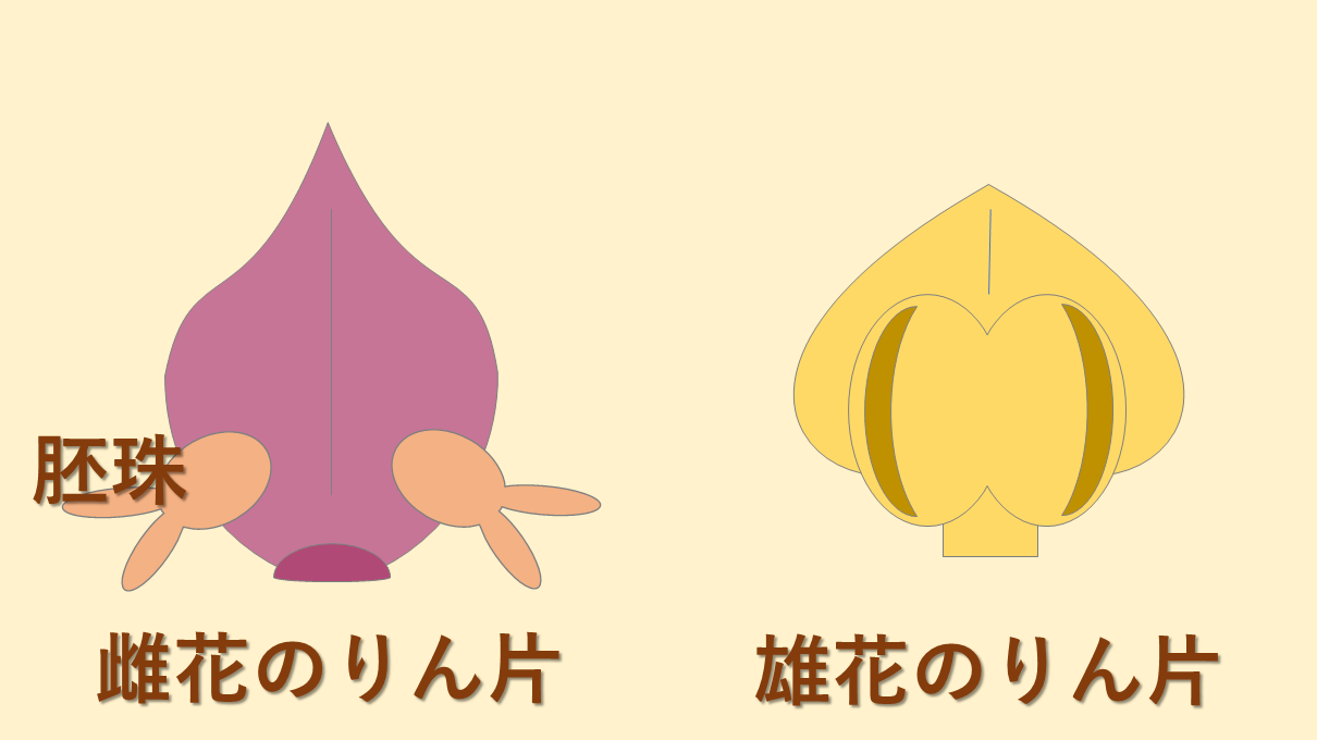 雌花のりん片の内側には、