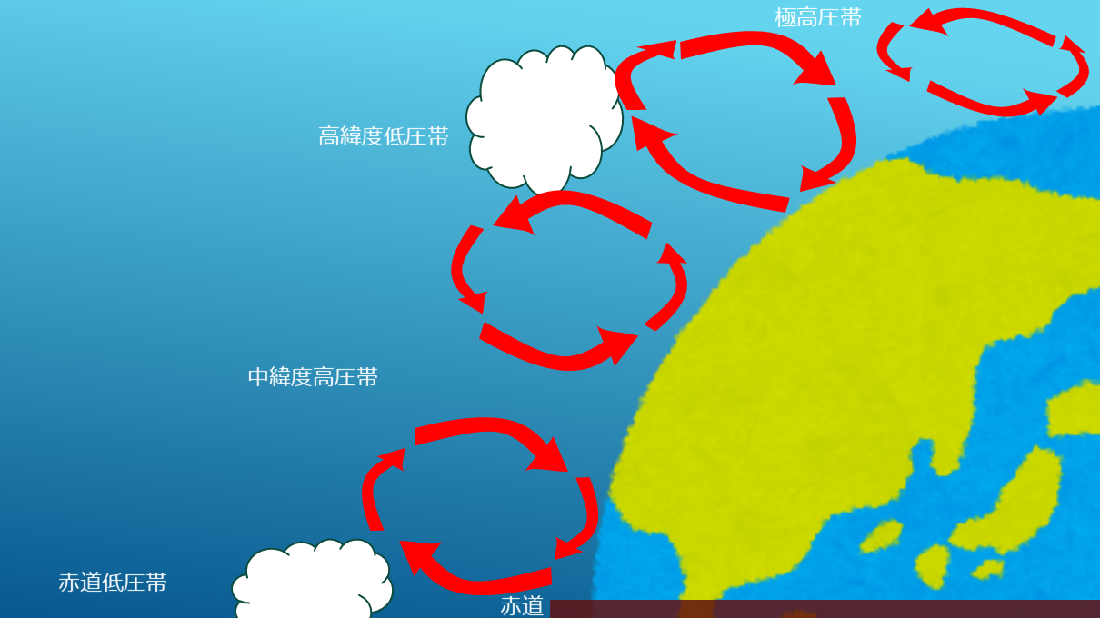 ですから北極や南極では、高圧帯になっていて、