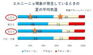 エルニーニョ現象で冷夏・暖冬はあくまでも傾向の話として認識してください。
