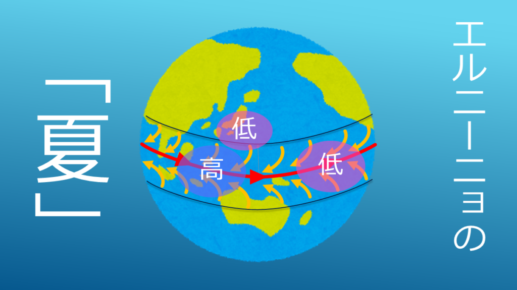 よって、エルニーニョ現象の夏は冷夏となります。