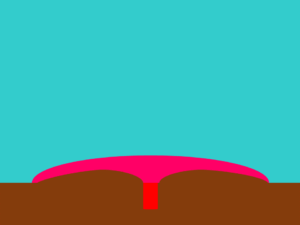 溶岩ドームとも。粘性の高いマグマが広がらず、