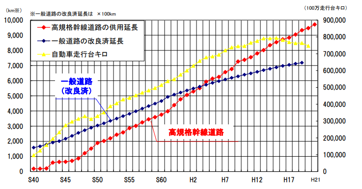 反対に道路はどんどん増やしました。