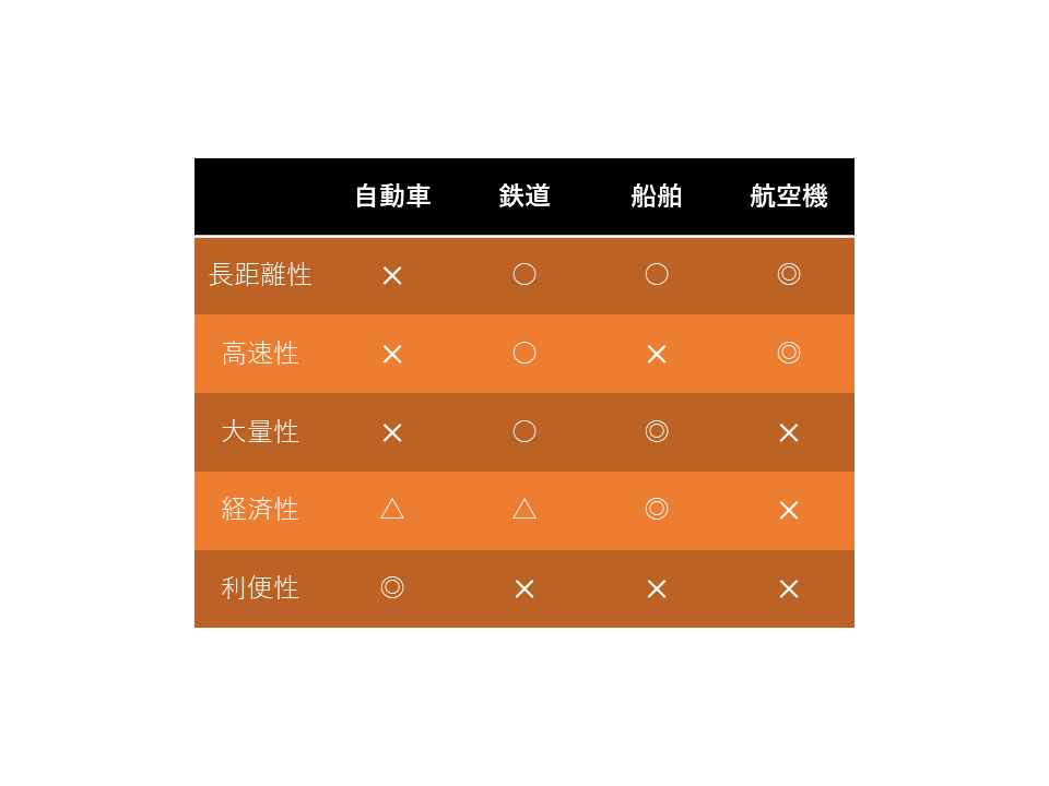鉄道や、船舶、航空に比べて、