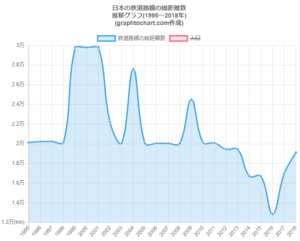 日本の鉄道路線は2000年頃の3万kmをピークに
